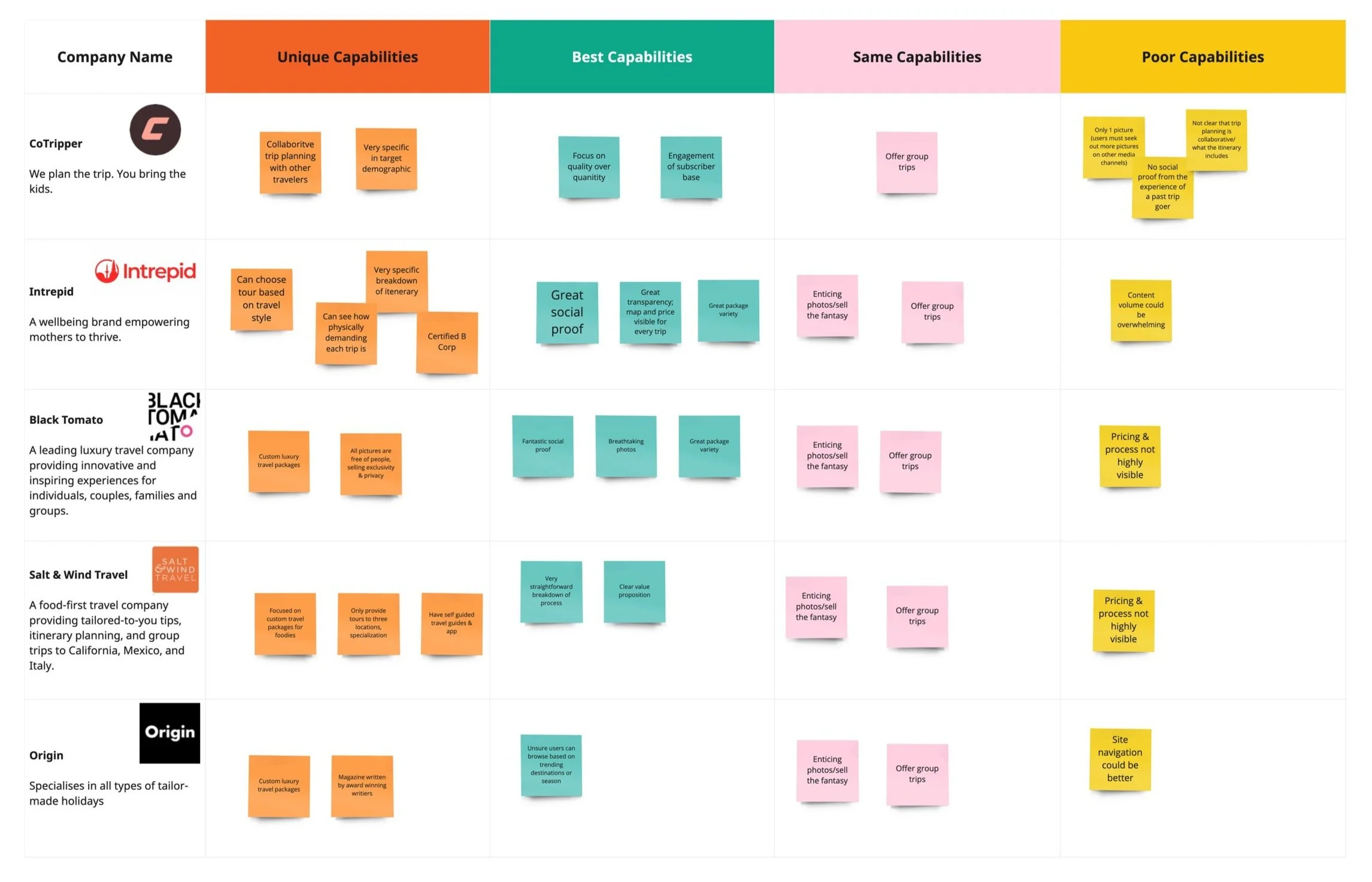 Due to CoTripper’s focus on both community building and curated travel, I decided to conduct competitive analysis in two phases.